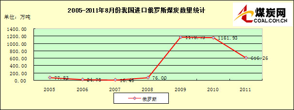 2005-2011年8月份我國進(jìn)口俄羅斯煤炭數(shù)量走勢統(tǒng)計(jì)
