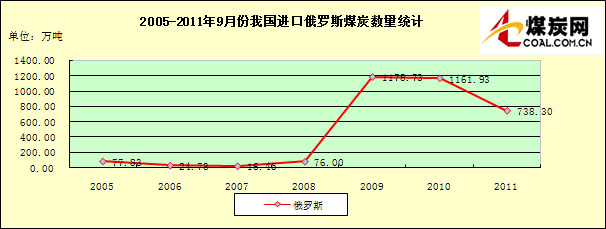 2005-2011年9月份我國進(jìn)口俄羅斯煤炭數(shù)量走勢統(tǒng)計(jì)
