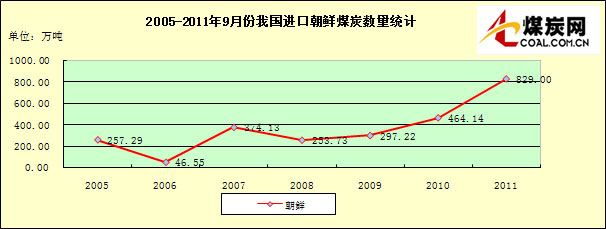 2005-2011年9月份我國(guó)進(jìn)口朝鮮煤炭數(shù)量走勢(shì)統(tǒng)計(jì)