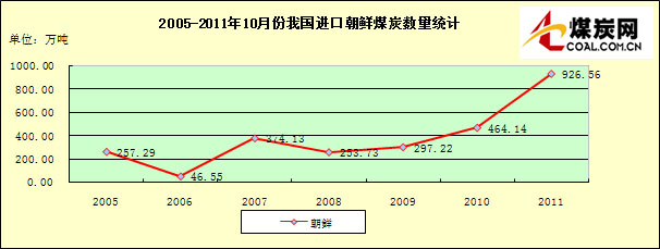 2005-2011年10月份我國(guó)進(jìn)口朝鮮煤炭數(shù)量走勢(shì)統(tǒng)計(jì)