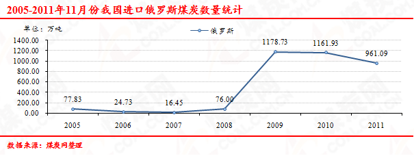 2005-2011年11月份我國(guó)進(jìn)口俄羅斯煤炭數(shù)量走勢(shì)統(tǒng)計(jì)