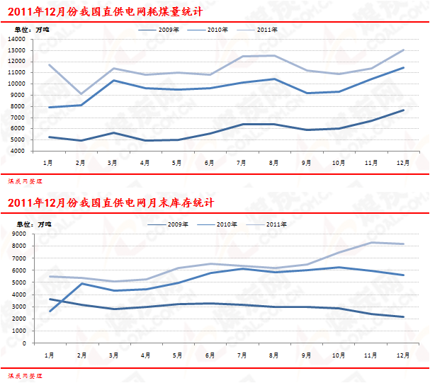2011年12月全國重點發(fā)電企業(yè)耗煤/庫存情況 | |||||||||||