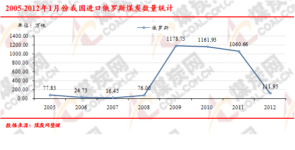 2005-2012年1月份我國進口俄羅斯煤炭數(shù)量走勢統(tǒng)計