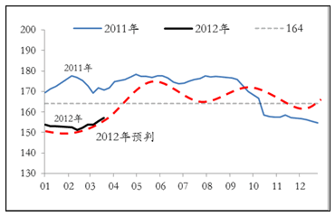 2012年1季度的鋼價走勢與預判相一致,我們對全年的預判仍維持不變。前期報告中,我們認為,鋼價在2011年底至2012年1季度這段時期將呈現(xiàn)“先探底,后回升”的格局,回升開始的時間點在2月底3月初,而國內(nèi)鋼材市場實際走勢大體與此相一致。對于今年全年鋼價運行預判,我們認為,將是一個緩慢回升的過程,其間可能有反復,但總體上將呈現(xiàn)“前低后高”的走勢。