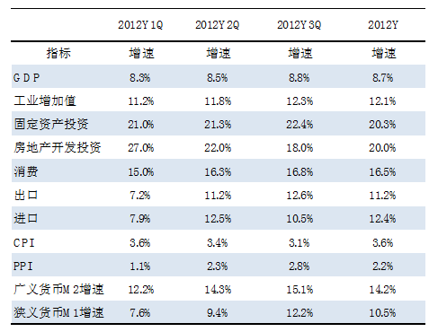圖表2 2012年中國主要經(jīng)濟指標預測
