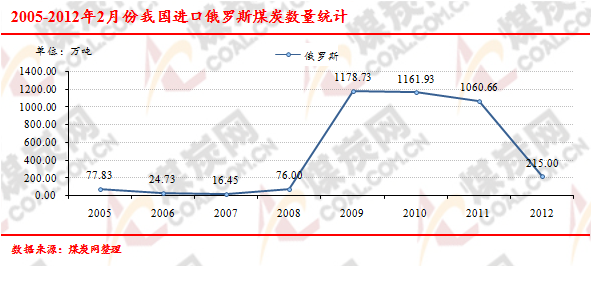 2005-2012年2月份我國進口俄羅斯煤炭數(shù)量走勢統(tǒng)計