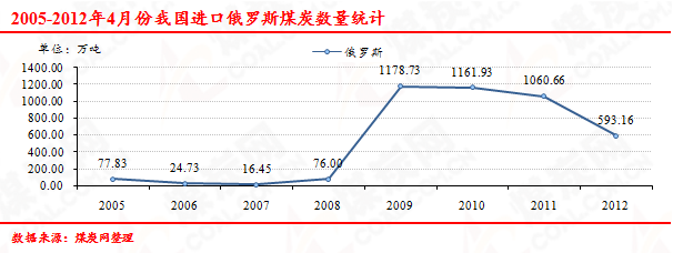 2005-2012年4月份我國進口俄羅斯煤炭數(shù)量走勢統(tǒng)計
