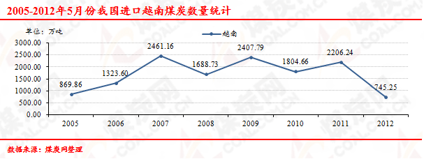2005-2012年5月份我國進(jìn)口越南煤炭數(shù)量走勢統(tǒng)計(jì)