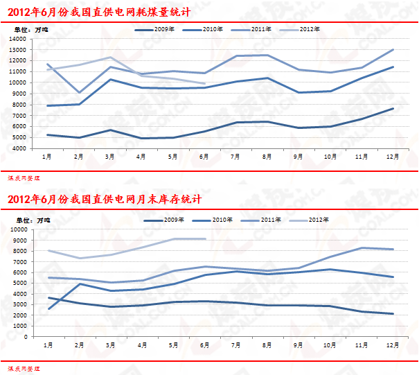 2012年6月全國重點發(fā)電企業(yè)耗煤/庫存情況 | |||||||||||
