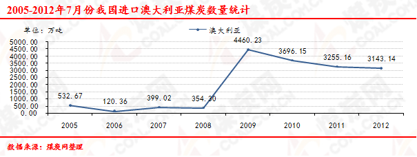 2005-2012年7月份我國(guó)進(jìn)口澳大利亞煤炭數(shù)量走勢(shì)統(tǒng)計(jì)