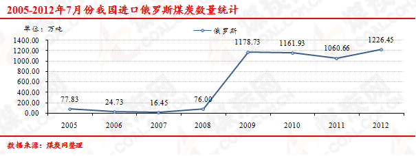 2005-2012年7月份我國進(jìn)口俄羅斯煤炭數(shù)量走勢統(tǒng)計(jì)