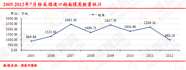 2005-2012年7月份我國(guó)進(jìn)口越南煤炭數(shù)量走勢(shì)統(tǒng)計(jì)