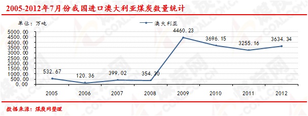2005-2012年8月份我國進(jìn)口澳大利亞煤炭數(shù)量走勢統(tǒng)計(jì)