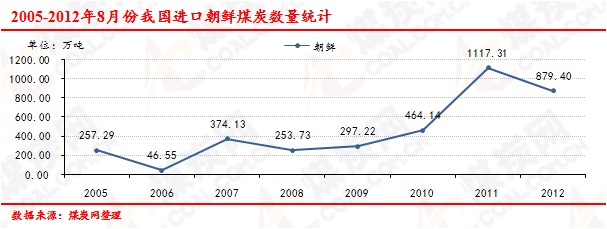 2005-2012年8月份我國(guó)進(jìn)口朝鮮煤炭數(shù)量走勢(shì)統(tǒng)計(jì)