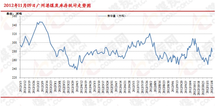 港口庫存方面:煤炭網(wǎng)信息研究中心數(shù)據(jù)顯示,截止到11月9日,廣州港存煤278.72萬噸,周環(huán)比增加29.15萬噸。現(xiàn)其中新沙公司存煤157萬噸;周環(huán)比增加23萬噸;西基公司存煤54萬噸,周環(huán)增加3萬噸;新港公司存煤9.8萬噸,環(huán)比減少2.9萬噸;黃埔公司存煤57.86萬噸,環(huán)比增加6.2萬噸。
