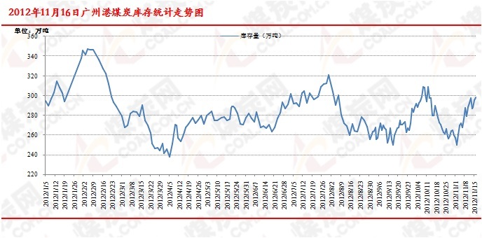 港口庫存方面:煤炭網(wǎng)信息研究中心數(shù)據(jù)顯示,截止到11月16日,廣州港存煤297.89萬噸,較上周同期上漲19.17萬噸,F(xiàn)其中新沙公司存煤171萬噸;周環(huán)比增加14萬噸;西基公司存煤61萬噸,周環(huán)增加7萬噸;新港公司存煤10.8萬噸,環(huán)比增加1萬噸;黃埔公司存煤55.09萬噸,環(huán)比減少2.77萬噸。