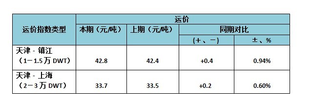 此表包含中國沿海(散貨)運價指數(shù)-煤炭(天津港航線)運價指數(shù)的本期和上期數(shù),以及同比增減。
