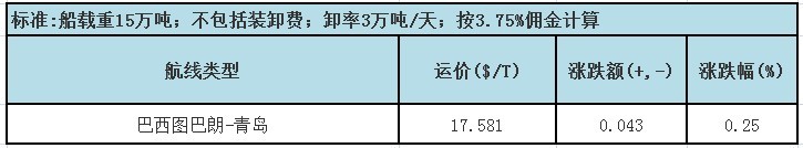 此表包含巴西圖巴朗-青島運價指數(shù)的本期和上期數(shù),以及同比增減。