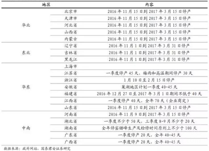 2017年上半年看,環(huán)保、錯峰生產(chǎn),全國各主要省份均出臺的相應(yīng)的錯峰停產(chǎn)停窯限產(chǎn)的計劃, 2017年停窯計劃時間明顯超過行業(yè)慣例(平均每年停窯55天左右)。而考慮到今年是《大氣污染防治行動計劃》考核年,今年錯峰停產(chǎn)可能高于16年標準。