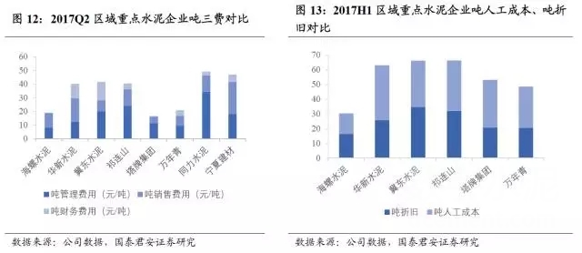 水泥板塊區(qū)域及區(qū)域間企業(yè)的盈利能力分化,方差達到歷史最大。17年上半年,水泥價格在需求維持平穩(wěn)狀態(tài)下出現(xiàn)大幅抬升,帶動整體水泥板塊盈利明顯回升。但是從半年報業(yè)績來看,盈利確出現(xiàn)分化,在非需求擴張周期中的漲價,區(qū)域之間和企業(yè)之間其實處于不對等的博弈狀態(tài),在錯峰停產(chǎn)及停產(chǎn)停窯的博弈中,由于水泥的重資產(chǎn)特征,產(chǎn)能利用率高低將直接導(dǎo)致噸折舊、財務(wù)成本、人工成本等上升,侵蝕利潤,導(dǎo)致水泥企業(yè)盈利能力出現(xiàn)分化。我們認為華東、華南板塊產(chǎn)能利用率明顯好于華北、東北及西北,且海螺水泥等龍頭的競爭優(yōu)勢顯著擴大。