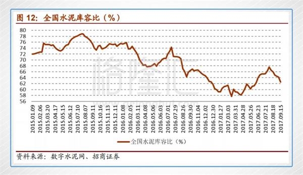 進(jìn)入四季度,華東及中南地區(qū)的水泥迎來自己的銷售旺季(十月-春節(jié)前)。然而接下來,水泥行業(yè)也將迎來前所未有的大力度限產(chǎn)停產(chǎn)政策。當(dāng)前的低位庫存(如上圖),旺季產(chǎn)量下降的夾擊,以及價(jià)格已處在近年高位的先決條件,都為水泥復(fù)制2010年時(shí)行業(yè)的巔峰增添了想象空間。
