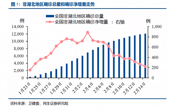 非湖北地區(qū)新增確診病例有所下降。從2月4日開始,全國(guó)非湖北地區(qū)新增確診病例逐漸下降,從2月3日高點(diǎn)的888例下降至2月14日的221例,防疫工作取得一定進(jìn)展。