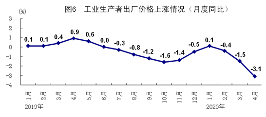 4月份,全國工業(yè)生產(chǎn)者出廠價(jià)格同比下降3.1%,降幅比3月份擴(kuò)大1.6個(gè)百分點(diǎn);環(huán)比下降1.3%。工業(yè)生產(chǎn)者購進(jìn)價(jià)格同比下降3.8%,環(huán)比下降2.3%。1-4月份,全國工業(yè)生產(chǎn)者出廠價(jià)格和工業(yè)生產(chǎn)者購進(jìn)價(jià)格同比分別下降1.2%和1.5%。