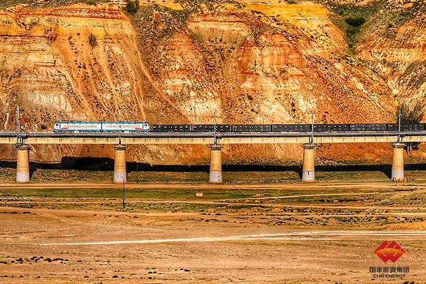 圖為滿載煤炭的列車正在駛過響沙灣大橋