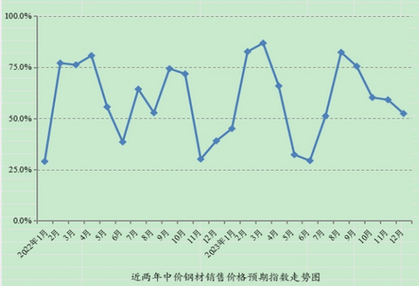 據(jù)對(duì)全國重要鋼材批發(fā)市場(chǎng)調(diào)查,12月份鋼材批發(fā)市場(chǎng)銷售價(jià)格預(yù)期指數(shù)、購進(jìn)價(jià)格預(yù)期指數(shù)分別為52.4%、56.7%,比上月分別下降6.7和3.2個(gè)百分點(diǎn),均保持在50%分界線之上,反映出市場(chǎng)對(duì)12月份鋼材價(jià)格繼續(xù)保持審慎樂觀,看漲預(yù)期略有減弱。