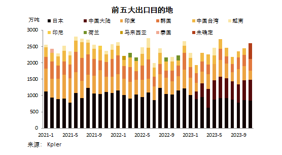 分國別看,11月,澳大利亞向日本出口煤炭840.35萬噸,環(huán)比降1.34%,同比降27.70%;向中國大陸出口640.32萬噸,環(huán)比增4.84%,上年同期為零;向韓國出口370.80萬噸,環(huán)比增9.59%,同比增13.71%。