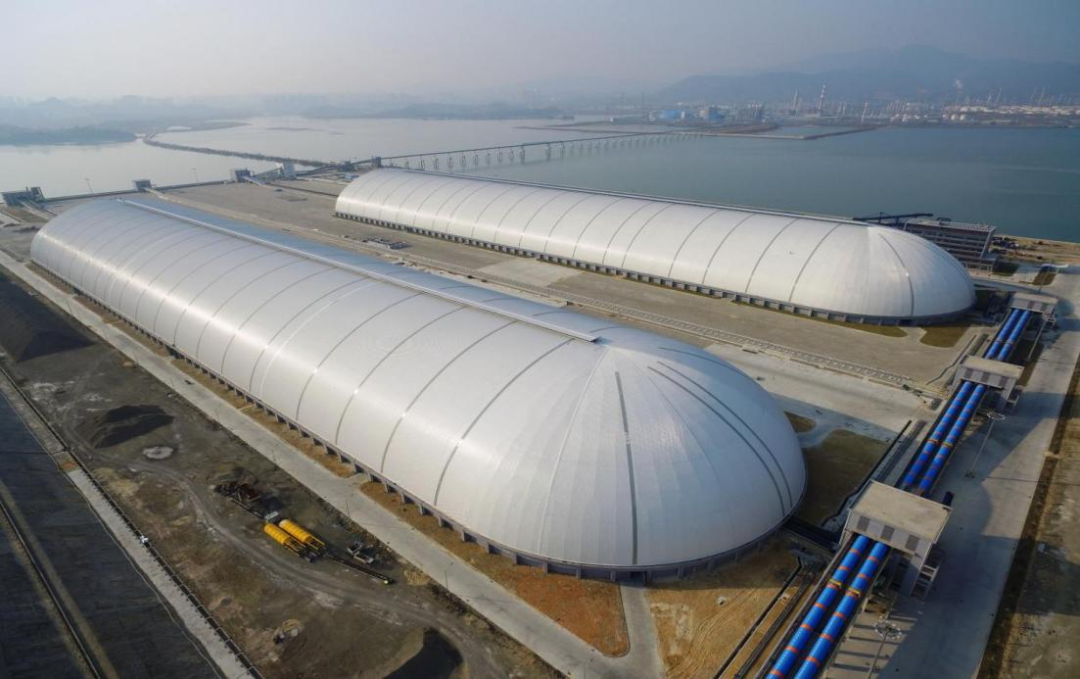 最具特色的是兩座“長500米、寬118米、高42米”的全亞洲最大的環(huán)保鋼結(jié)構(gòu)條形封閉煤倉,其創(chuàng)新性的設(shè)計(jì)榮獲2019年“中國鋼結(jié)構(gòu)金獎(jiǎng)”;葜蒈鯙趁禾扛鄣木G色發(fā)展以“一套海陸空三位一體的污染防治體系+光伏項(xiàng)目+碼頭岸電設(shè)施”為核心的三個(gè)“綠色法寶”。煤炭出入倉封閉作業(yè)、皮帶機(jī)封閉式作業(yè)、多重除塵裝置三大保障,實(shí)現(xiàn)了防治煤灰、揚(yáng)塵污染。因地制宜布置了分布式光伏設(shè)備,年均可為港口提供清潔電能約597.2萬kWh,節(jié)約標(biāo)準(zhǔn)煤約733.96噸/年。通過建設(shè)岸電設(shè)施及含油、含煤、生活三大污水處理站,基本實(shí)現(xiàn)了“零污染、零排放”,為構(gòu)建零碳港口建設(shè)示范標(biāo)桿注入綠色新動(dòng)能。