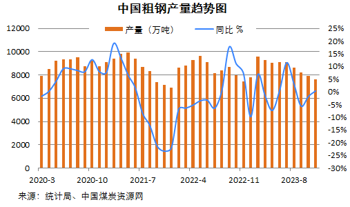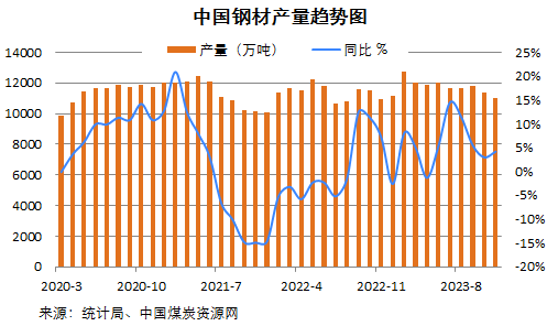 國家統(tǒng)計局?jǐn)?shù)據(jù)顯示,2023年1-11月份,全國焦炭、粗鋼、生鐵和鋼材產(chǎn)量同比仍然表現(xiàn)增長。具體來看: