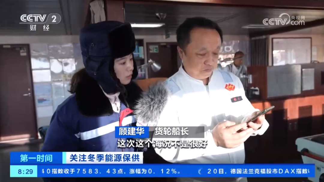 貨輪船長 顧建華:對,還有十幾分鐘要開船了,這次這個海況不是很好,因為有寒潮的影響。海上將遭遇大風浪天氣,現(xiàn)在北煤南運急呀,所以我們要盡快地把煤炭運到千家萬戶。