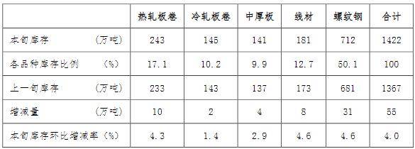 3月上旬,5大品種鋼材社會庫存環(huán)比均有所上升,增量、增幅有所回落,其中螺紋鋼仍為增量最大品種,具體見下表。