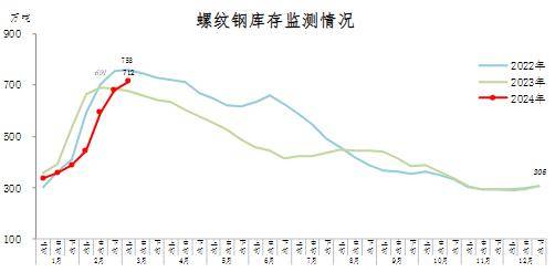 3月上旬,螺紋鋼庫存712萬噸,環(huán)比增加31萬噸,上升4.6%,庫存增速繼續(xù)回落;比年初增加407萬噸,上升133.4%;比上年同期增加33萬噸,上升4.9%。