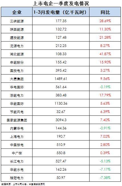 不過,一季度以水電為主的電力企業(yè)因為來水較往年偏枯、水電發(fā)電空間被擠壓等因素,發(fā)電量均有不同程度下降。