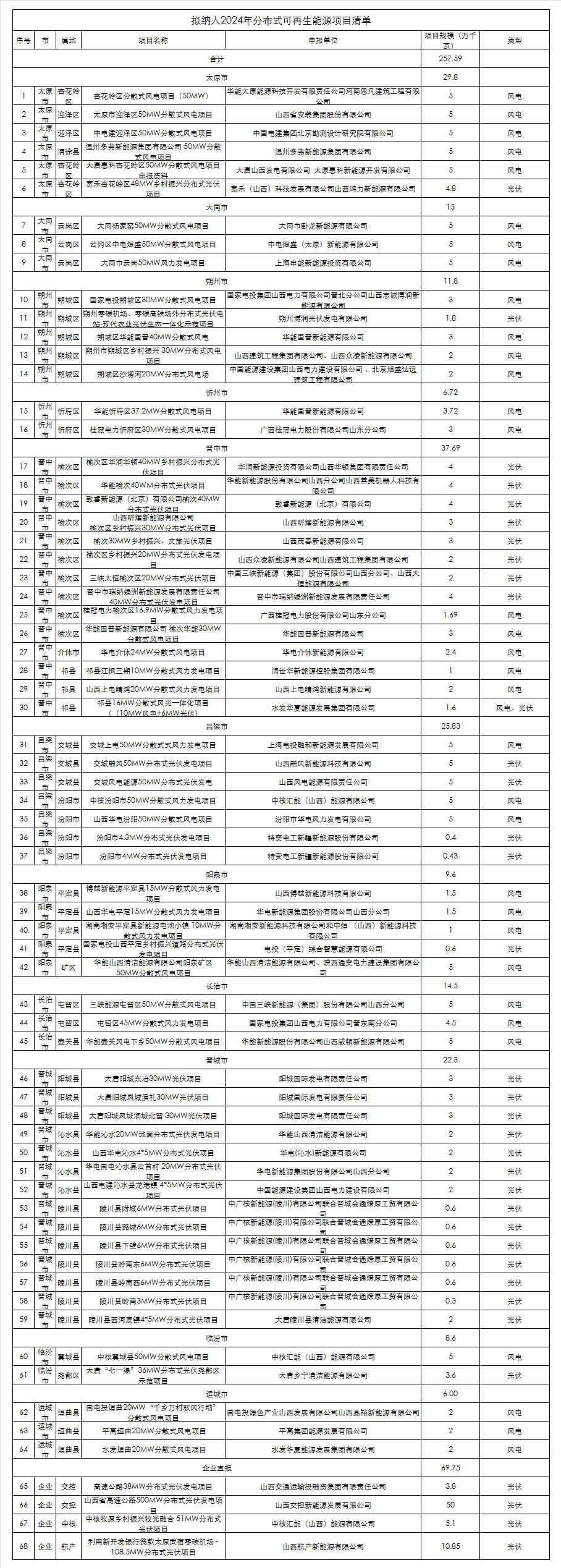 關(guān)于山西省2024年分布式可再生能源項目評審結(jié)果的公示