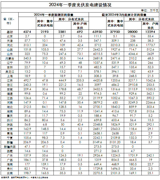 國(guó)家能源局于5月6日晚間公布了2024年一季度光伏發(fā)電建設(shè)情況。
