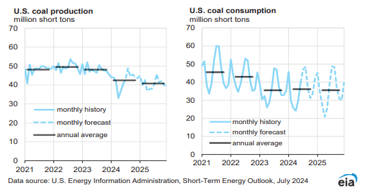 美國(guó)能源信息署(EIA)7月9日發(fā)布最新《短期能源展望》報(bào)告顯示,2024年,美國(guó)煤炭出口量預(yù)計(jì)略高于1億短噸。