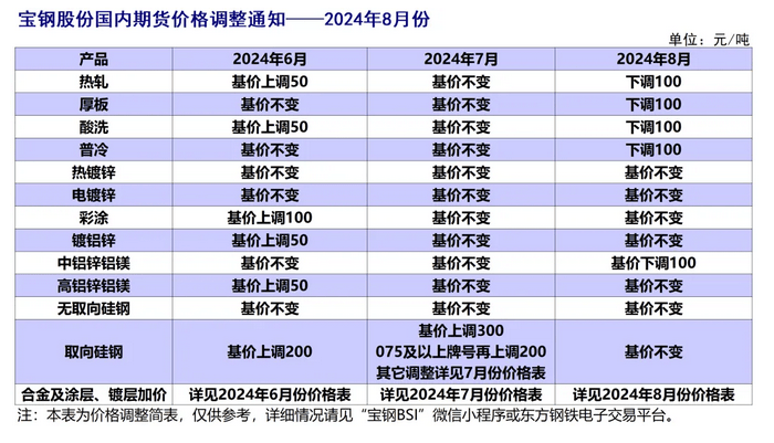 經(jīng)研究決定,寶鋼股份板材內(nèi)銷價(jià)格2024年8月份在2024年7月份基礎(chǔ)上調(diào)整公告如下(以下除特殊注明外,均為不含稅):
