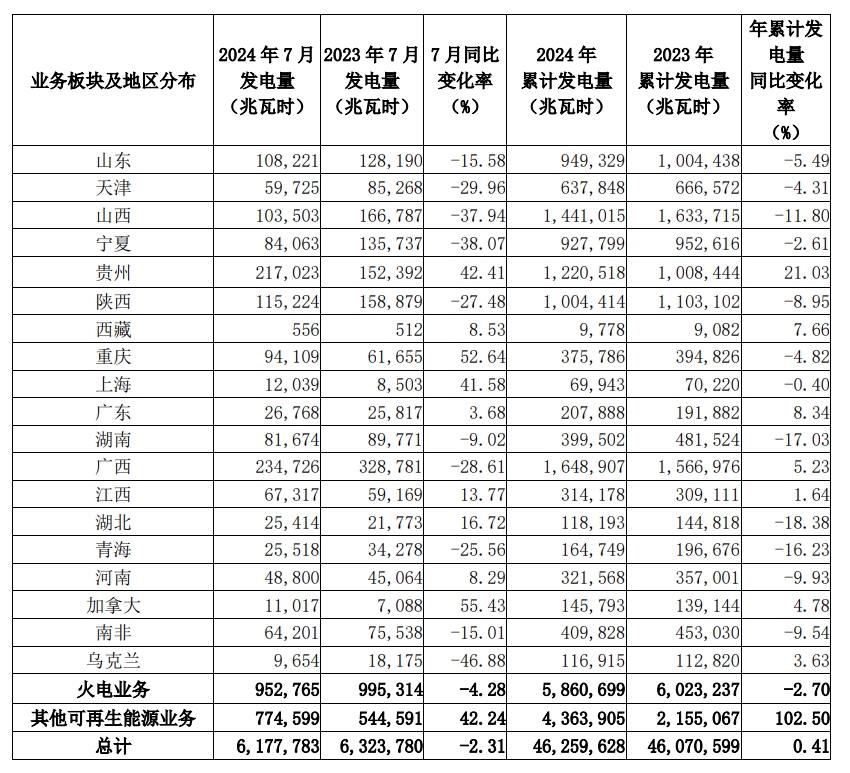2024 年 7 月發(fā)電量詳情如下:
