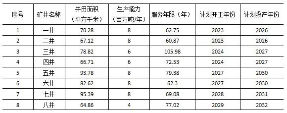 臺(tái)格廟礦區(qū)規(guī)劃礦井建設(shè)順序表