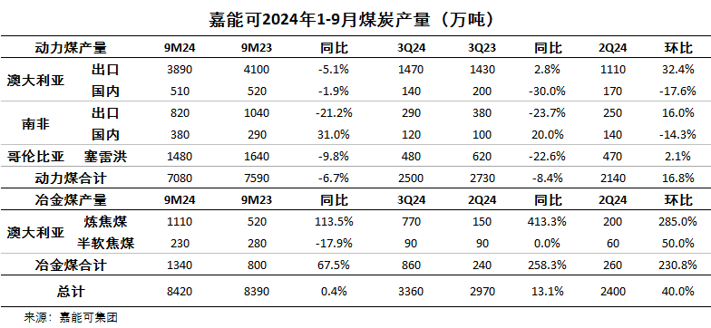 全球礦商嘉能可(Glencore)10月30日發(fā)布季度產(chǎn)量報(bào)告顯示,今年1-9月份,公司煤炭產(chǎn)量為8420萬噸,同比微增0.4%。