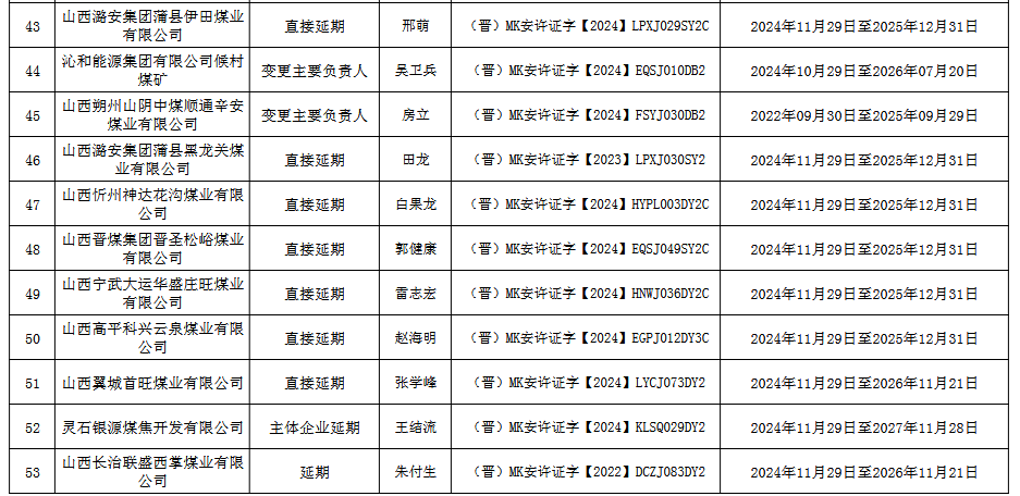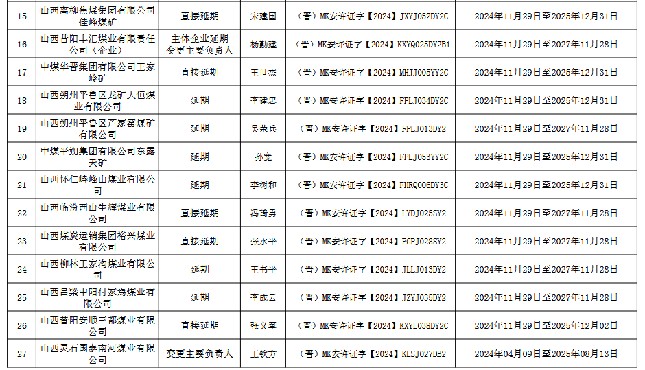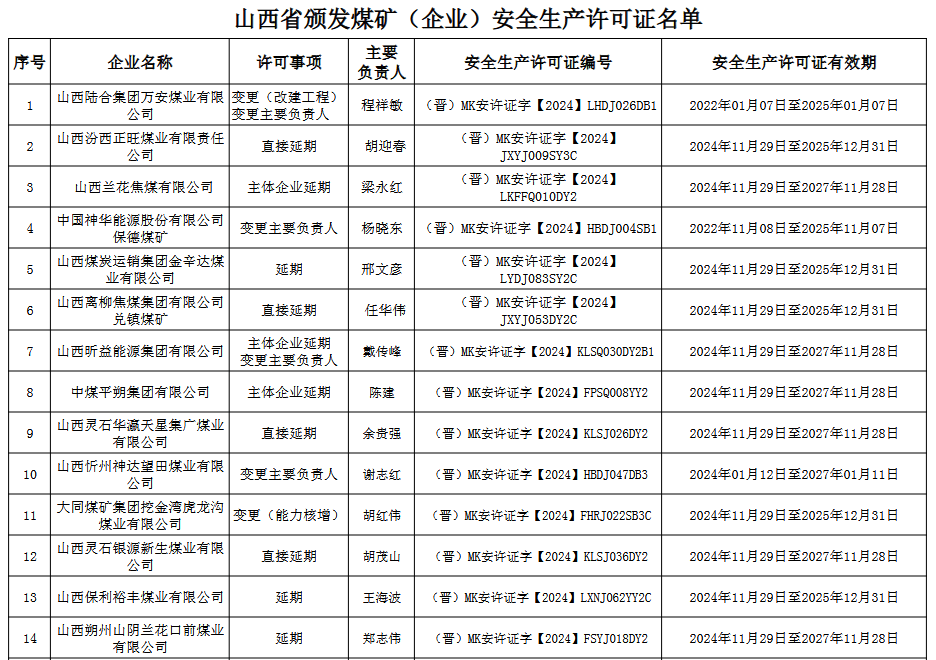 山西省應急管理廳關于頒發(fā)煤礦(企業(yè))安全生產(chǎn)許可證的公告